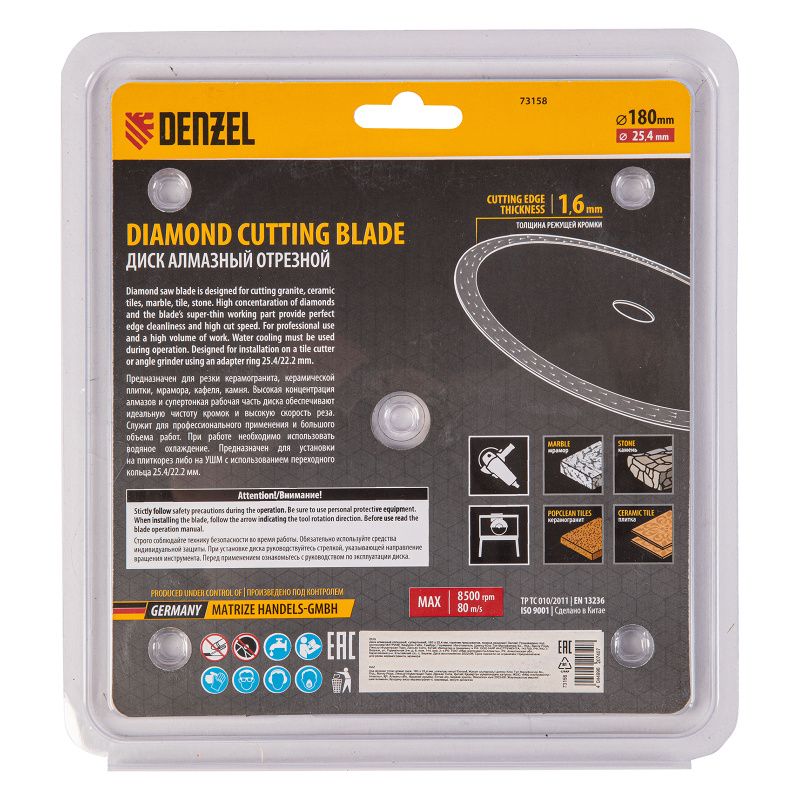 Диск алмазный сплошной, супертонкий Denzel 180 х 25,4 мм, 73158