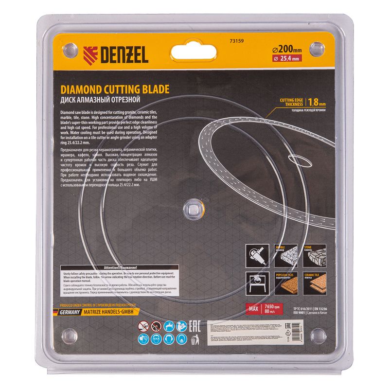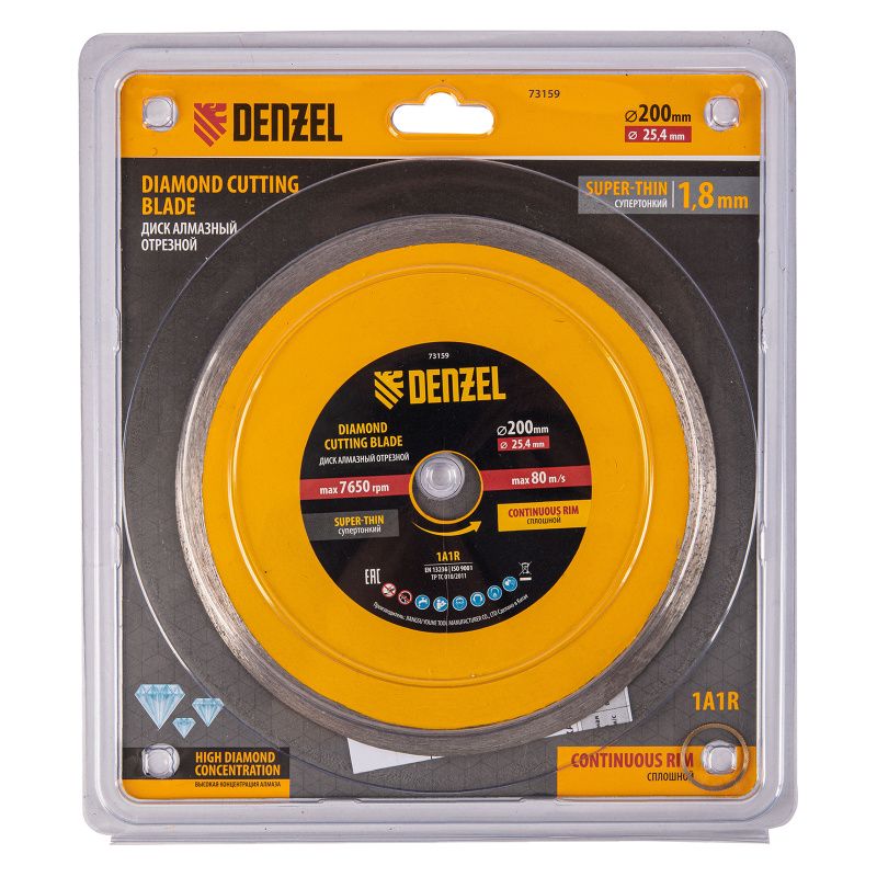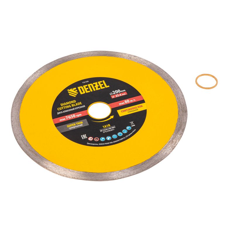 Диск алмазный сплошной, супертонкий Denzel 200 х 25,4 мм, 73159