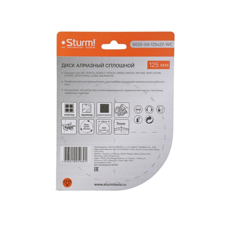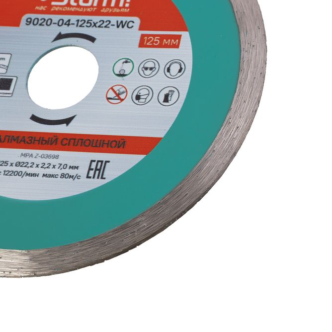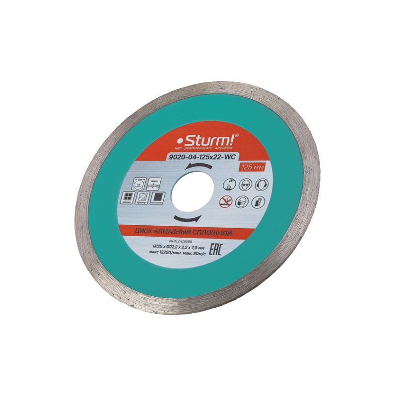Алмазный диск, влажная резка, непрерывный 125мм Sturm, 9020-04-125x22-WC