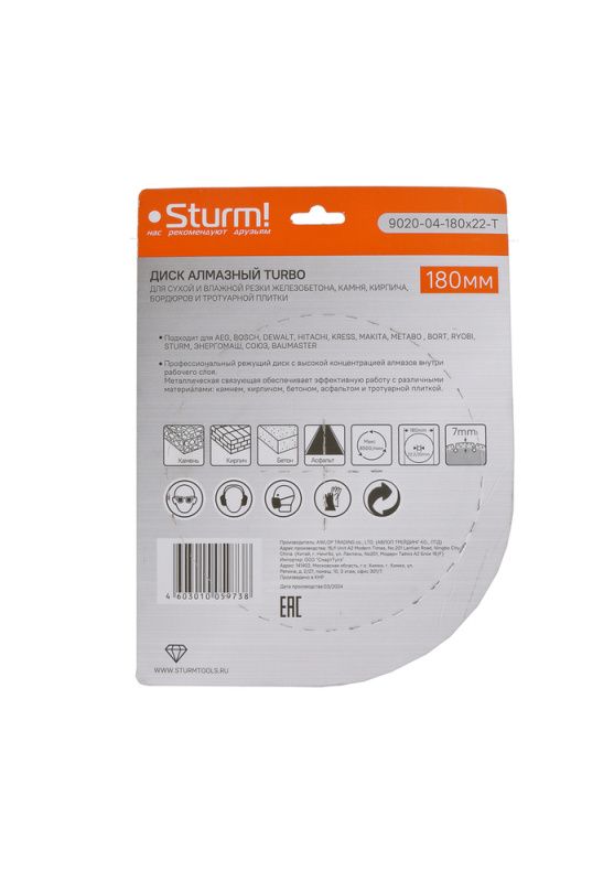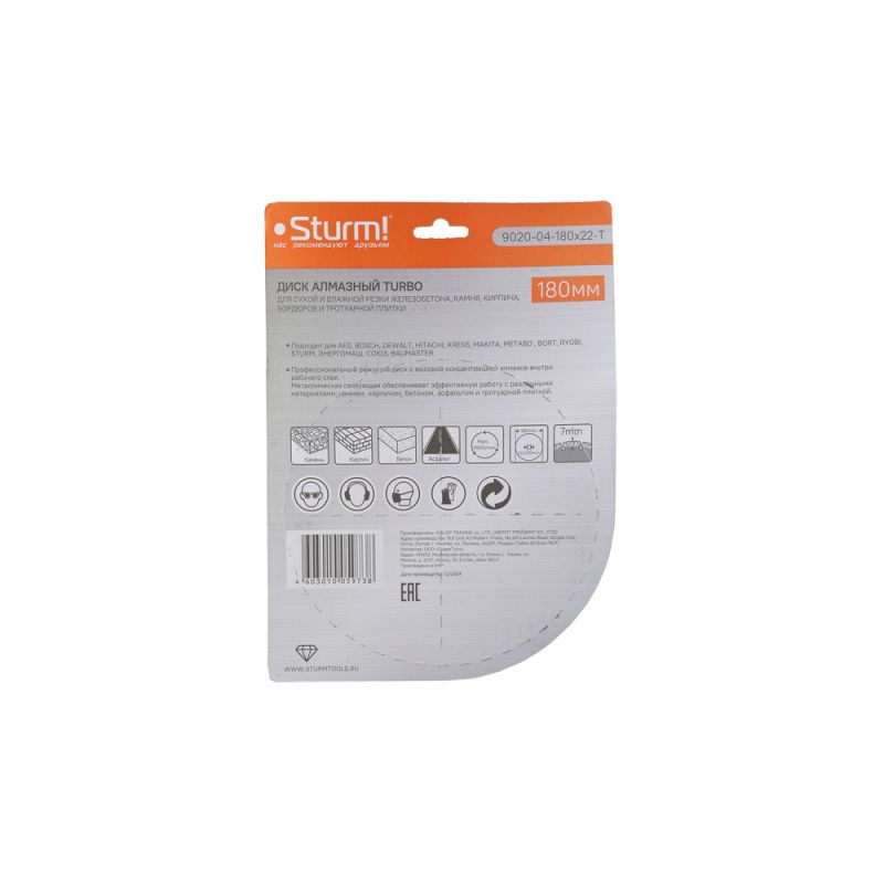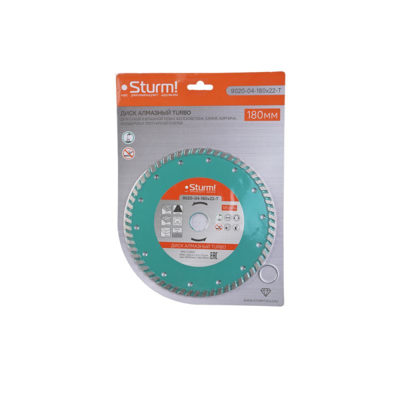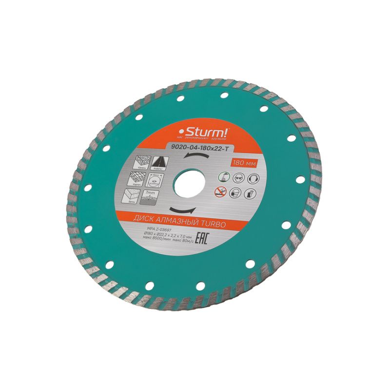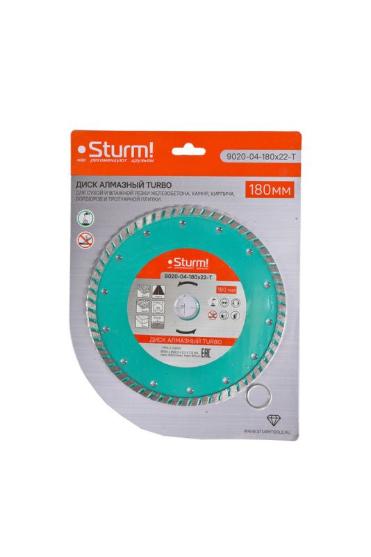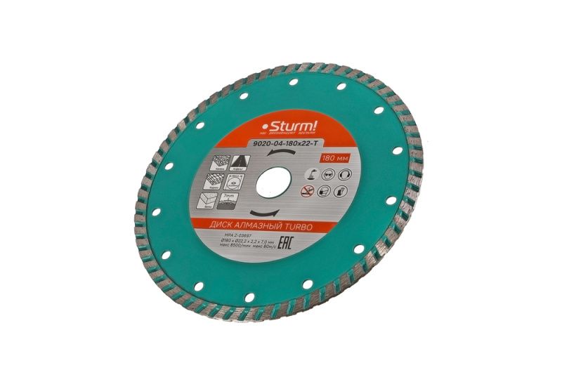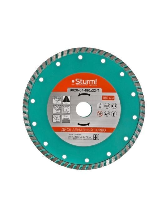 Алмазный диск, сухая резка, "Турбо" 180мм Sturm, 9020-04-180x22-T