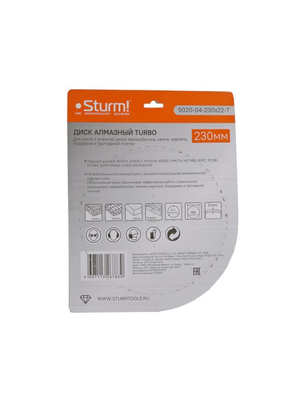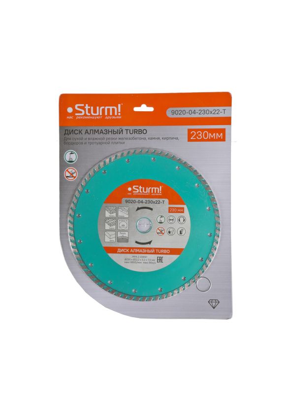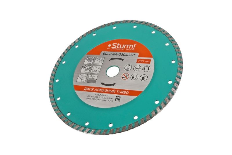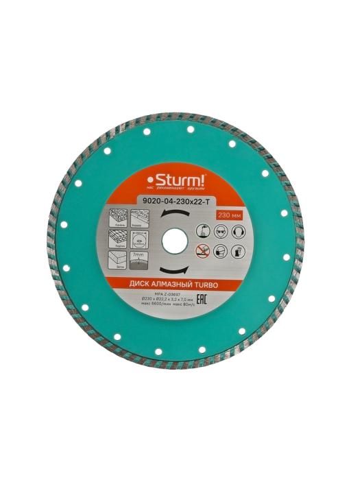 Алмазный диск, сухая резка, "Турбо" 230мм Sturm, 9020-04-230x22-T
