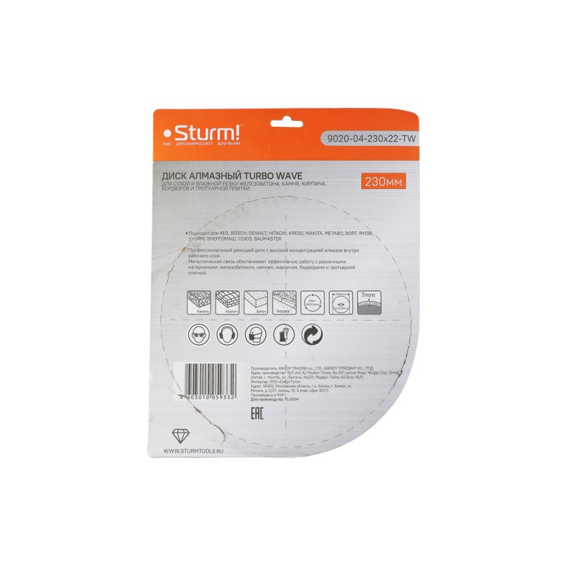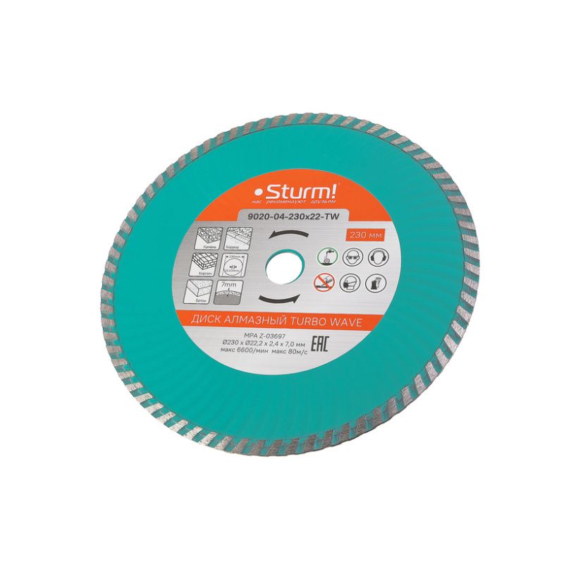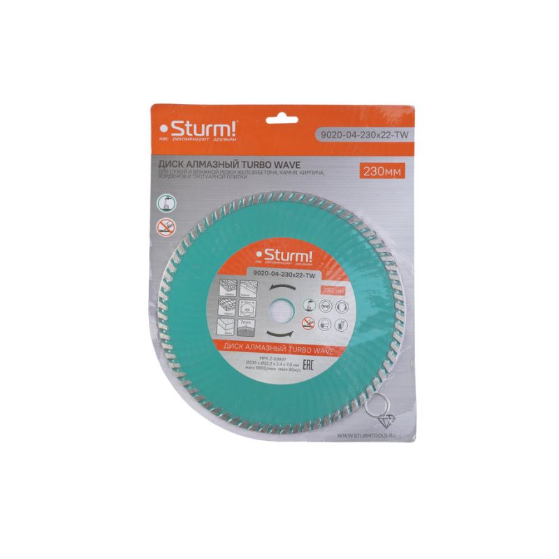 Алмазный диск, сухая/влажная резка Turbo Wave 230мм Sturm, 9020-04-230x22-TW
