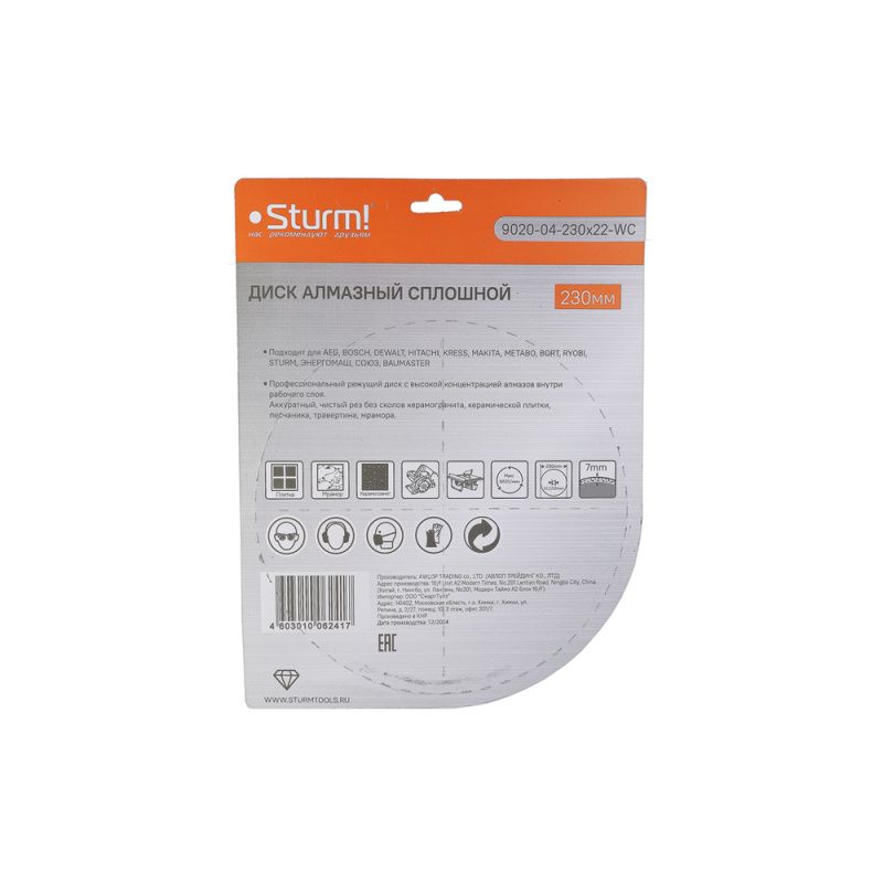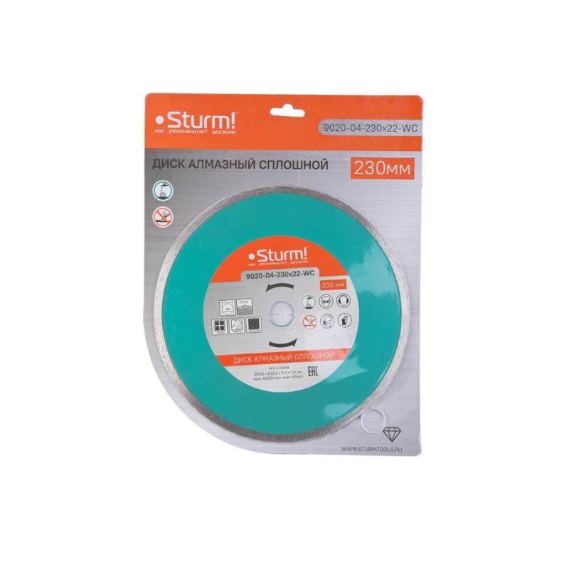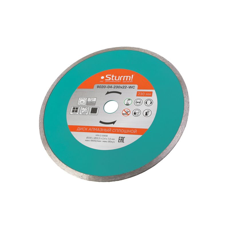 Алмазный диск, влажная резка, непрерывный 230мм Sturm, 9020-04-230x22-WC