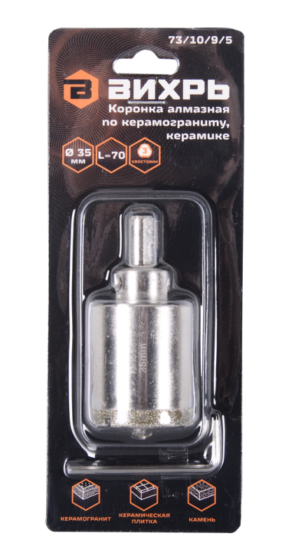Коронка алмазная Вихрь по керамограниту/керамике, 35 мм, 73/10/9/5