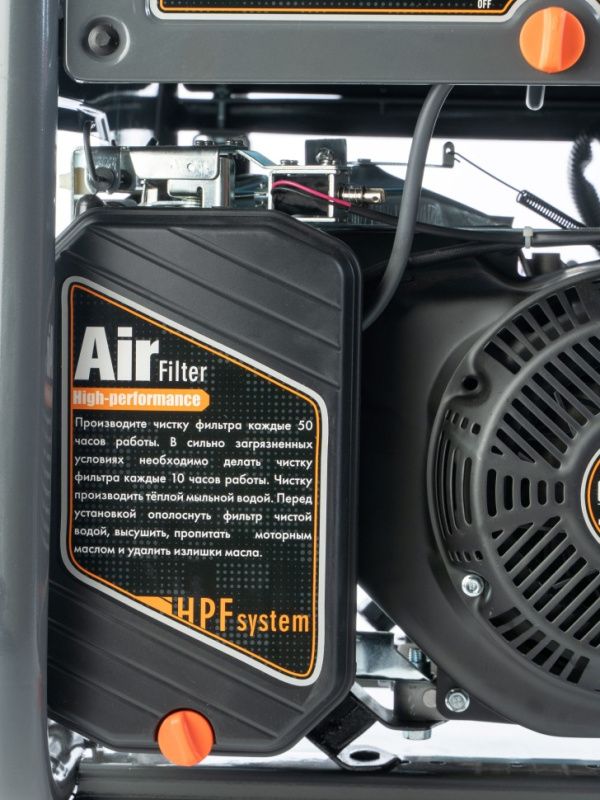 Система защиты от перегрузки, короткого замыкания и перегрева гарантирует безопасность при эксплуатации. Удобная ручка и колёса облегчают транспортировку и установку генератора.