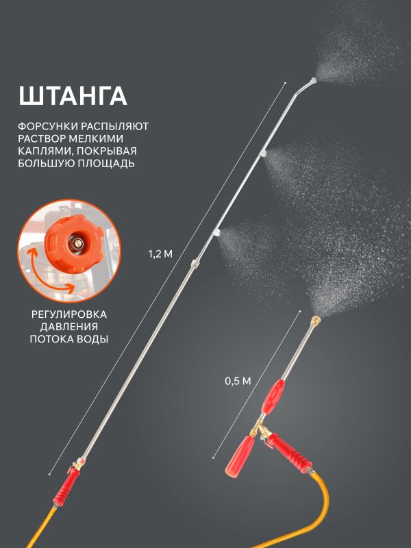 Одной из главных особенностей распылителя является его удобная конструкция в виде ранца. Это позволяет равномерно распределить вес и снизить нагрузку на плечи и спину оператора, что особенно важно при длительных работах. Кроме того, ранец оборудован мягкими подушками, которые обеспечивают комфорт при ношении и предотвращают натирание кожи.