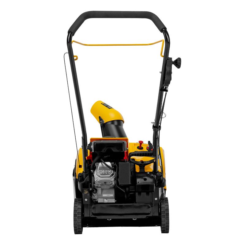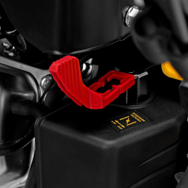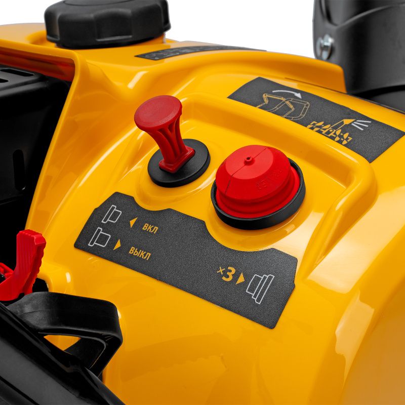 Удобная рукоятка с регулируемым углом наклона обеспечивает комфортное использование машины. Большие колеса с протектором обеспечивают отличное сцепление с поверхностью и позволяют легко перемещаться по снежному покрытию.