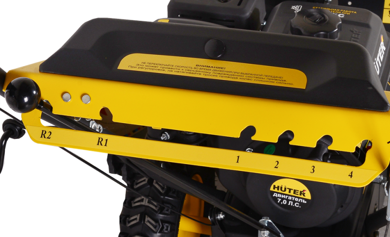 - Регулируемая высота снегоотбрасывателя позволяет выбрать оптимальный угол выброса снега;