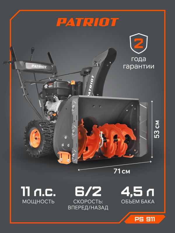 Бензиновый снегоуборщик Patriot PS 911, 426108488: эффективность и надежность в одном