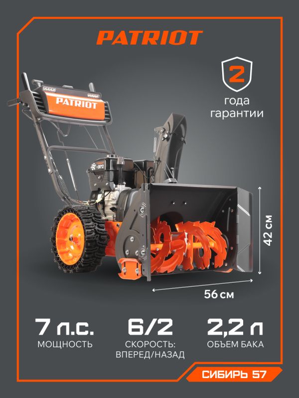 Бензиновый снегоуборщик Patriot Сибирь 57, 426108657: эффективное решение для удаления снега