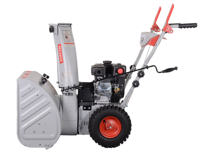 Снегоуборщик оснащен колесами, что обеспечивает его маневренность и удобство использования. Кроме того, он имеет регулируемую высоту сброса снега, что позволяет адаптировать его под различные условия и требования.