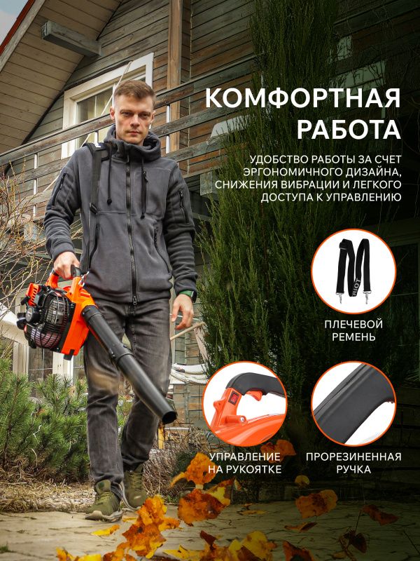 Устройство имеет компактные размеры и небольшой вес, что делает ее удобной в использовании. Вы сможете легко маневрировать инструментом и очищать труднодоступные места. Кроме того, воздуходувка оснащена эргономичной рукояткой, которая обеспечивает комфортную работу и уменьшает нагрузку на руки и спину.