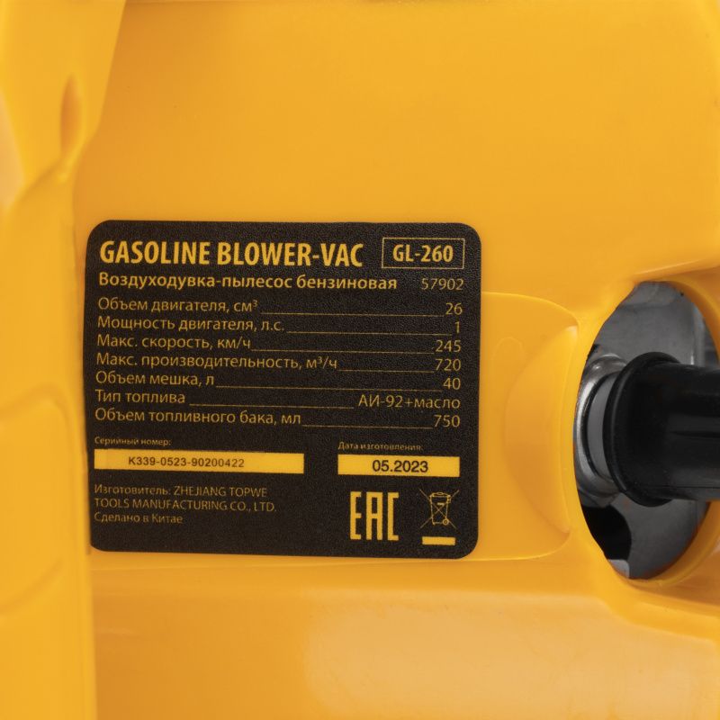 Воздуходувка-пылесос бензиновая Denzel GL-260, 57902 — незаменимый помощник для уборки территории
