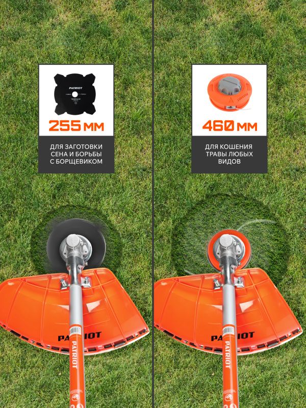 Бензотриммер Patriot PT 5555 поставляется в комплекте с ножом, который позволяет легко обрезать жесткую траву и кустарники в труднодоступных местах. Так же бензотриммер оснащен леской, которая легко заменяется при необходимости.