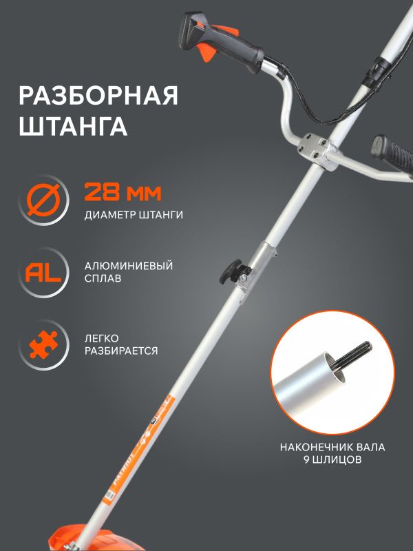 Бензиновый триммер Патриот ПТ 3555 ЕС кантри обладает следующими конструктивными особенностями: