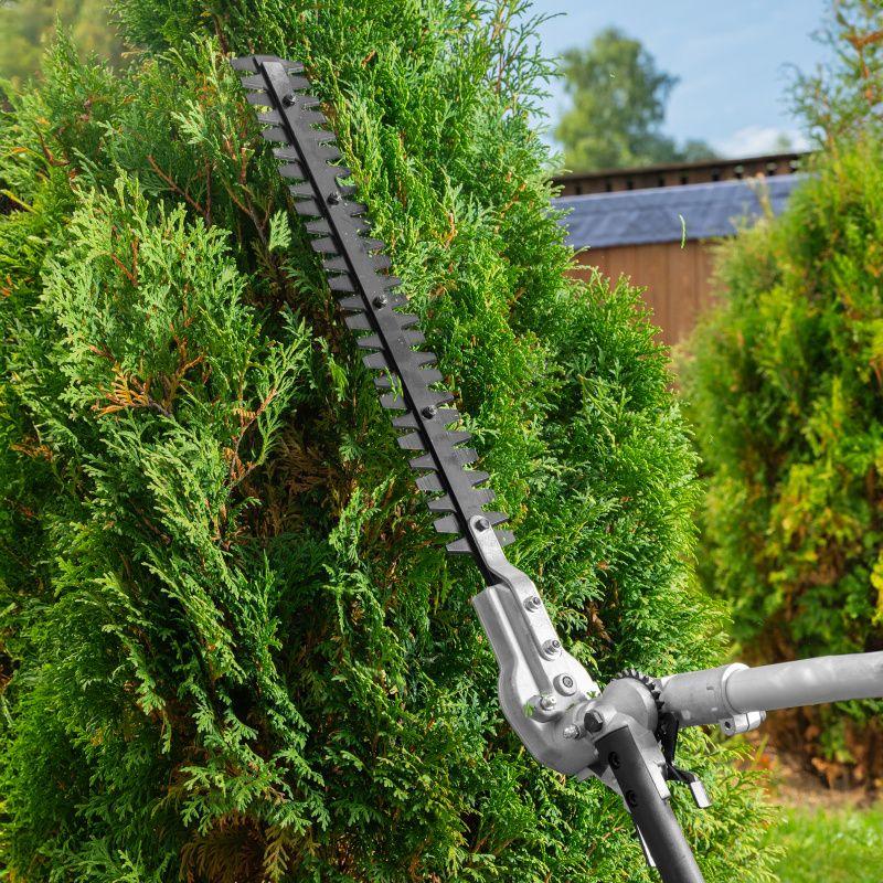Многофункциональность: возможность использования различных насадок (высоторез, кусторез, пильный диск, трехлучевой диск, катушка с леской - в комплекте) расширяет возможности применения триммера.