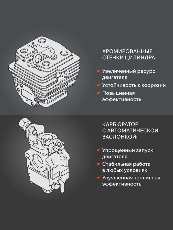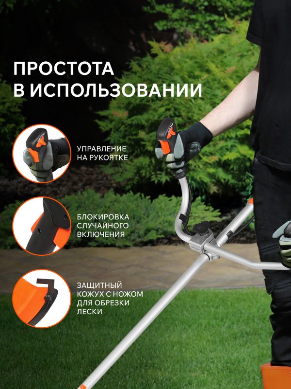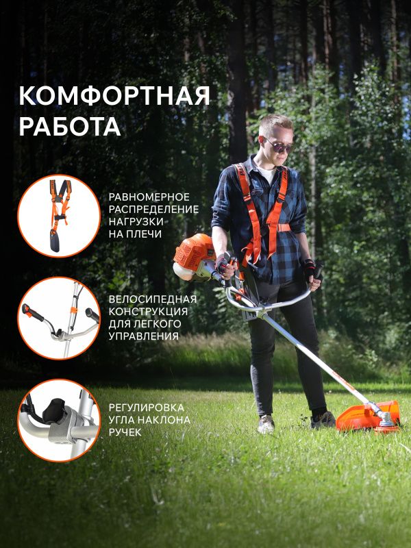 Один из главных преимуществ этого триммера - его мощность. Благодаря двигателю мощностью 2,5 л.с. он легко справляется с любыми задачами. Кроме того, он оснащен широкими лесками, которые позволяют быстро и эффективно обрезать траву и кустарники.