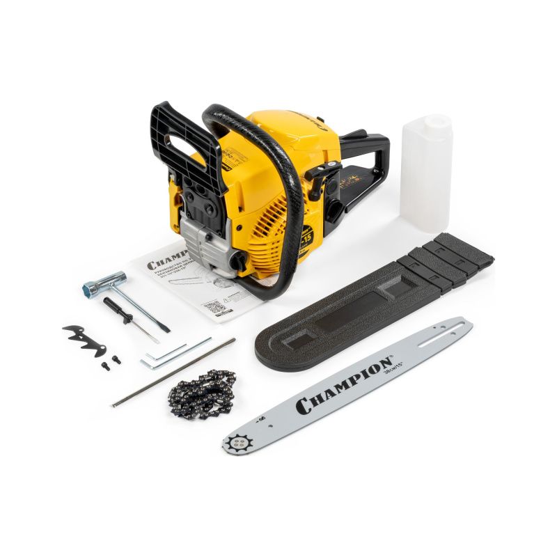 Бензиновая цепная пила 251-15" производителя Champion - надежный инструмент для выполнения различных задач по обрезке и распиливанию древесины. Она отлично подходит для использования как в домашних условиях, так и в профессиональных целях.