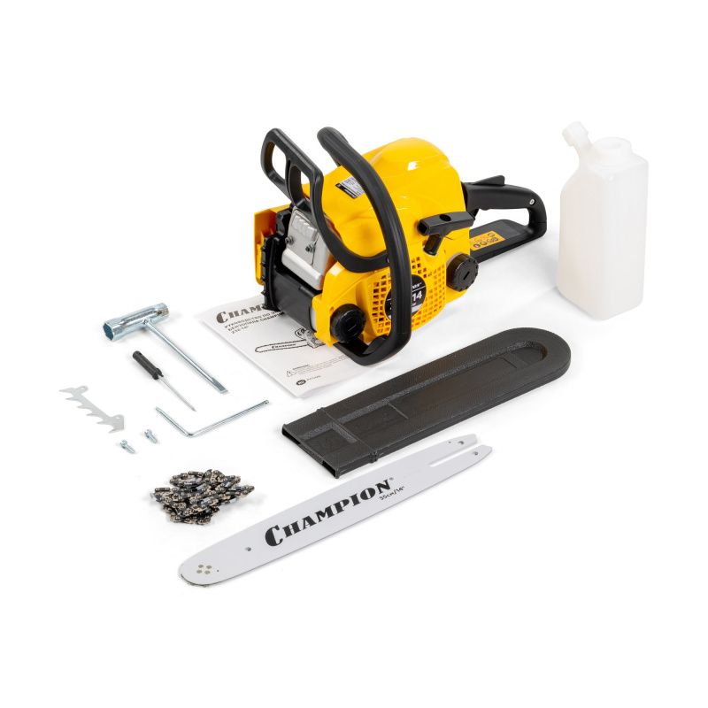 Выбирая бензопилу CHAMPION 232-14", вы получаете надёжный инструмент, который поможет вам справиться с любыми задачами. Благодаря своей мощности, удобству и качеству сборки, эта бензопила станет незаменимым помощником в вашем хозяйстве. Сделайте свои работы более эффективными и лёгкими с помощью бензопилы CHAMPION 232-14"!