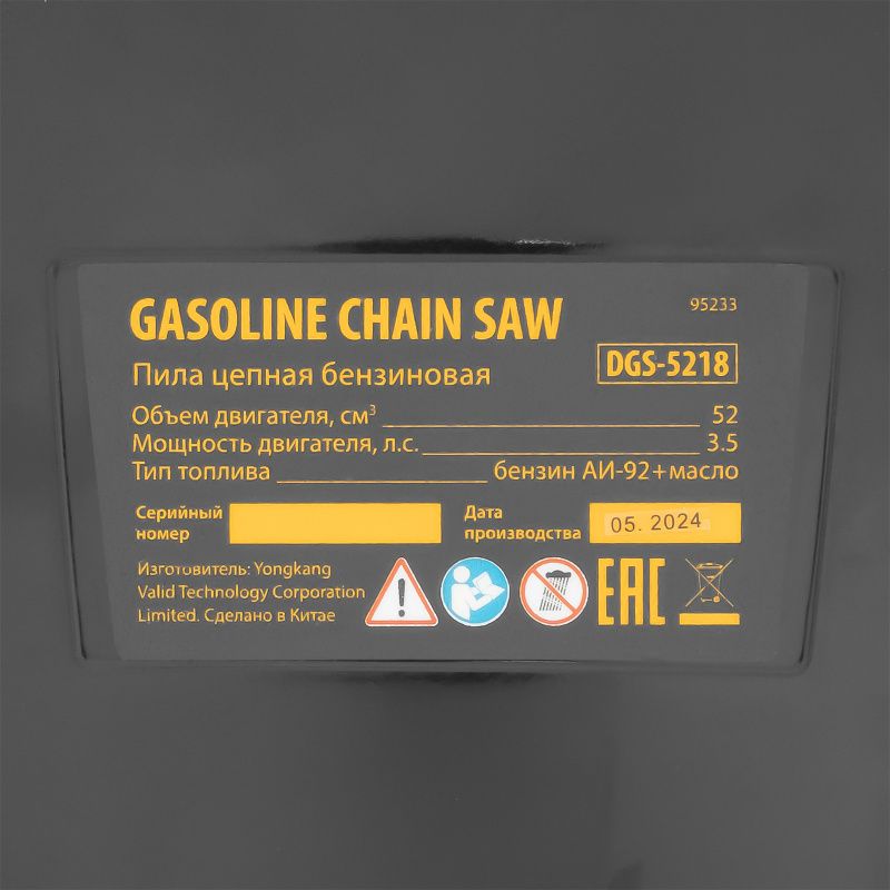 Пила цепная бензиновая Denzel DGS-5218, 95233