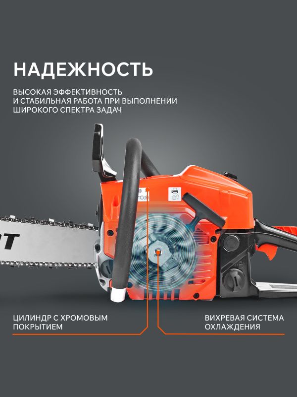 Система автоматической смазки цепи обеспечивает ее постоянное смазывание, что увеличивает срок ее службы и уменьшает износ. Система антивибрации снижает утомляемость оператора и увеличивает комфорт при работе с пилой.