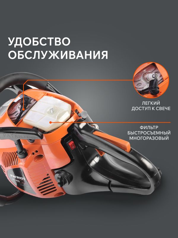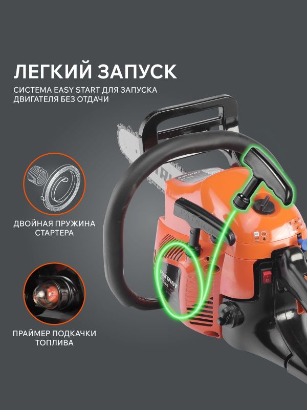 Бензопила Патриот ПТ 3816 Империал, имеет следующие конструктивные особенности: