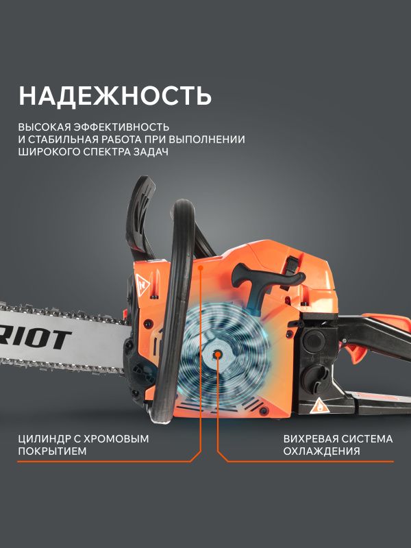 Кроме того, модель оснащены защитным кожухом, который предотвращает случайные контакты с цепью и шиной. Это снижает риск получения травм и повышает безопасность работы.