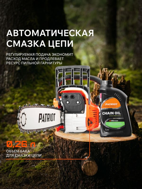 Цепная бензопила Патриот ПТ 4518 обладает некоторыми преимуществами: