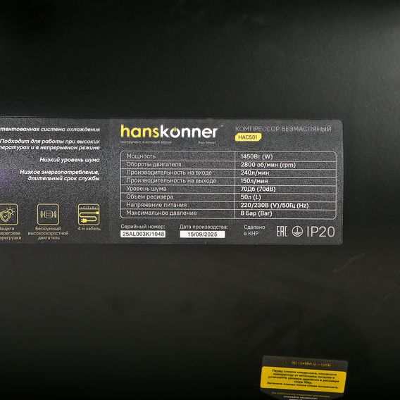 -----HAC501 Компрессор воздушный безмасляный Hanskonner, HAC501