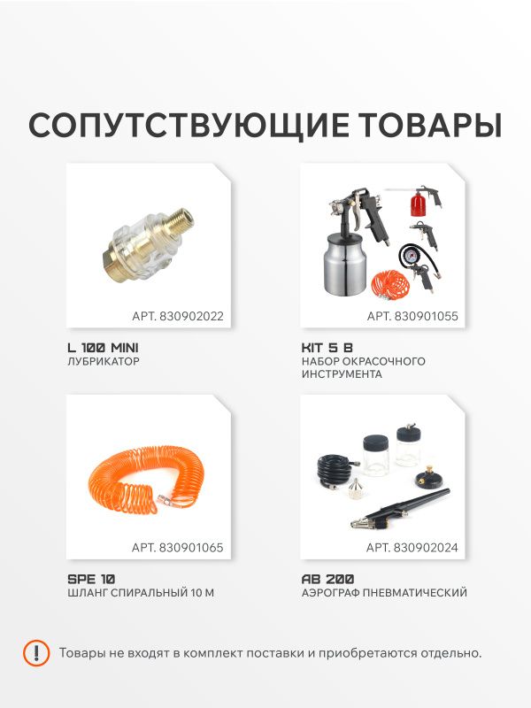 Производительность: 280 л/м, обеспечивает быструю накачку шин, аэрографов и другого пневматического оборудования.