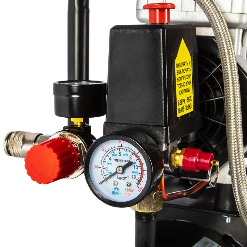 Компрессор оснащен мощным двигателем мощностью 1.2 л.с., который обеспечивает высокую производительность и эффективность работы. Благодаря этому компрессору можно быстро и легко накачать шины автомобиля, накачать мячи, матрасы и другие надувные изделия, а также использовать его для покраски, пескоструйной обработки и других задач.