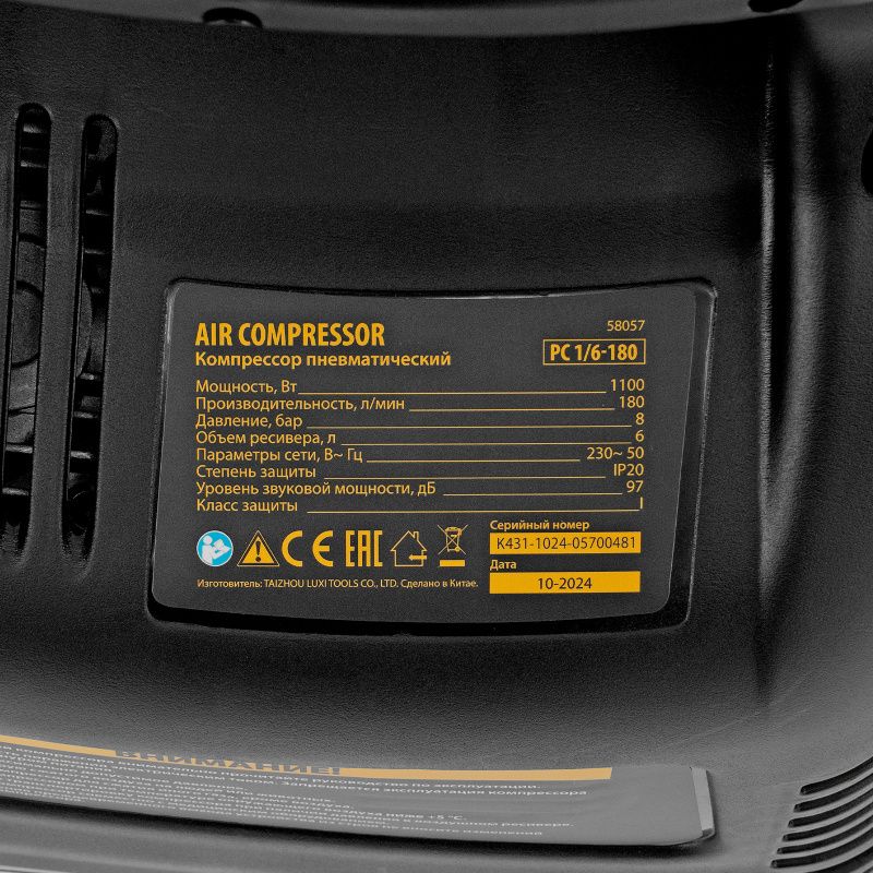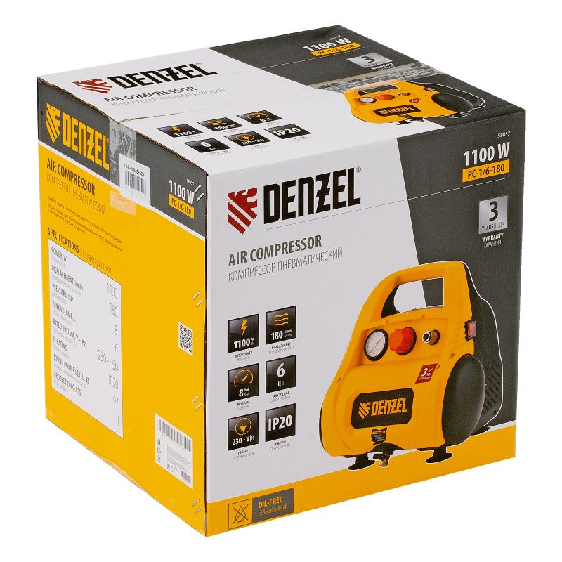 -----Компрессор воздушный безмасляный Denzel РС 1/6-180,1, 58057
