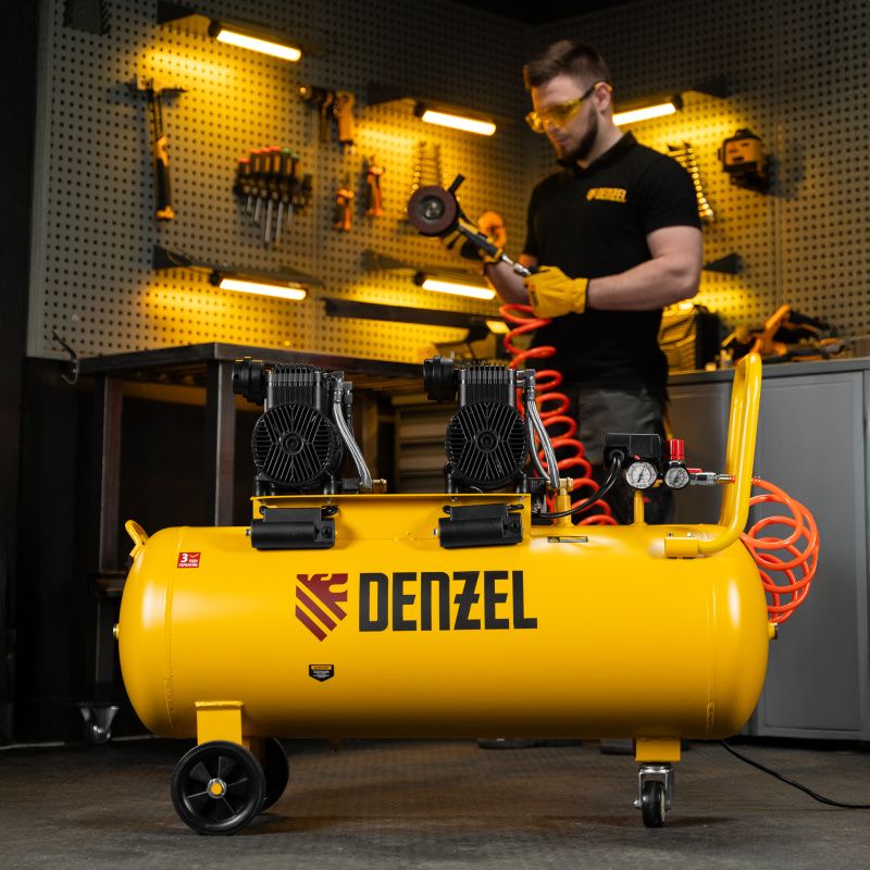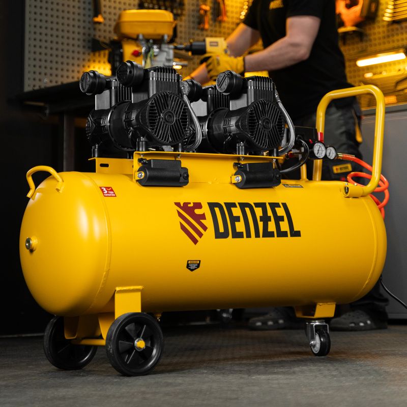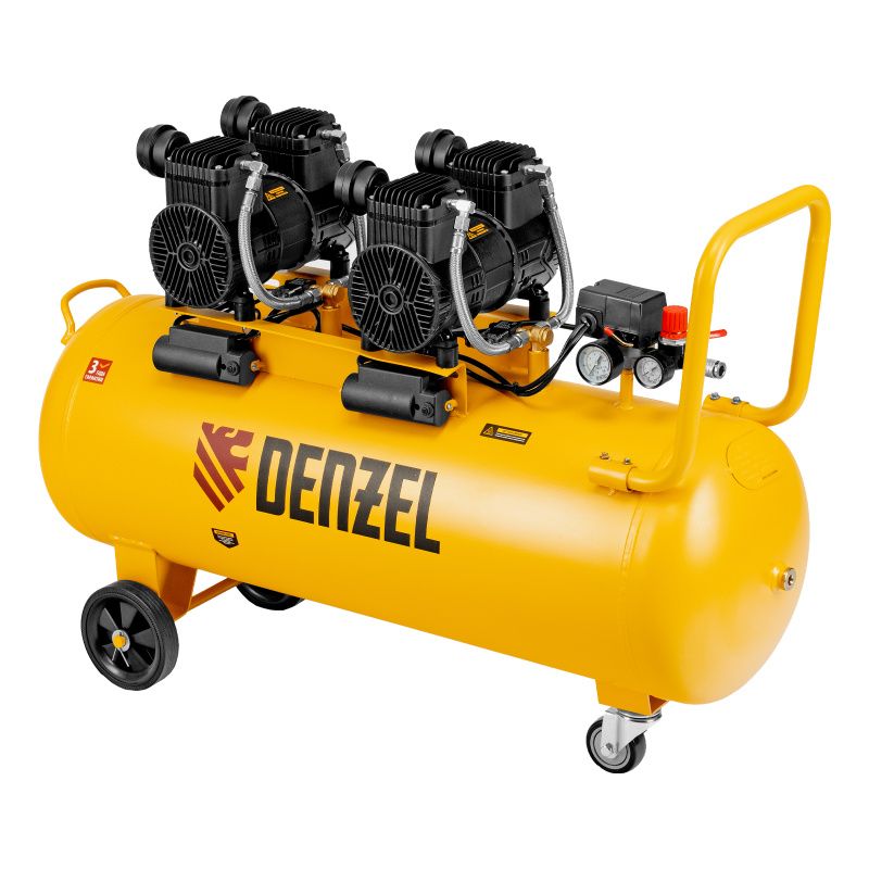 Малошумный безмасляный компрессор Denzel DLP-3000/100, 58145