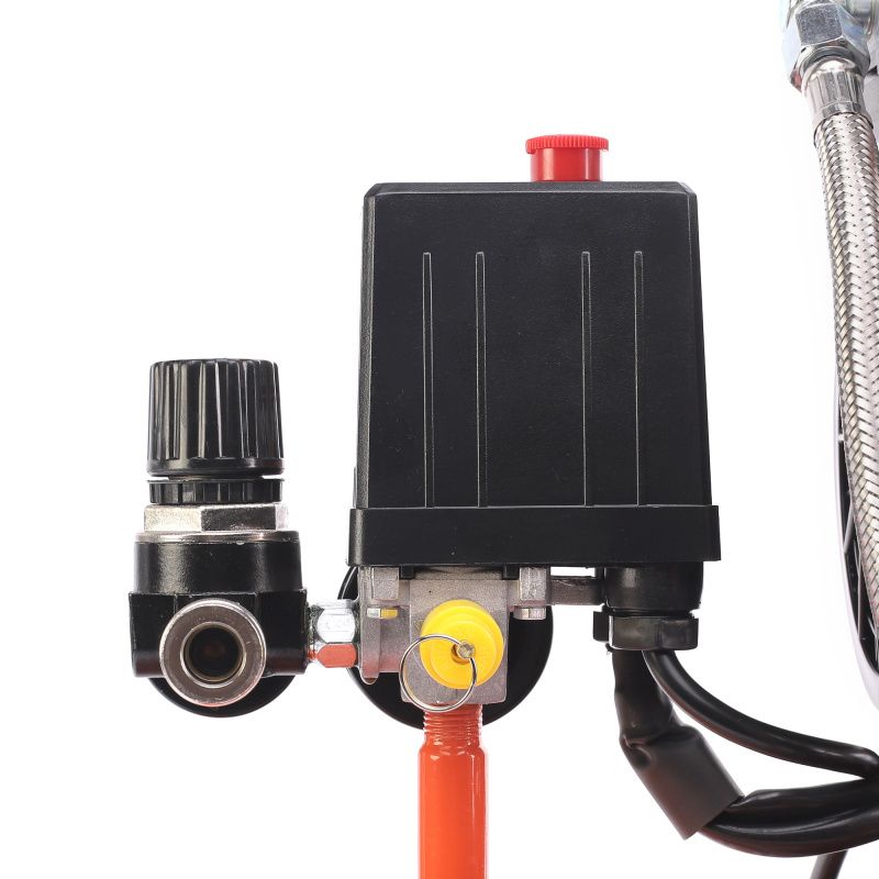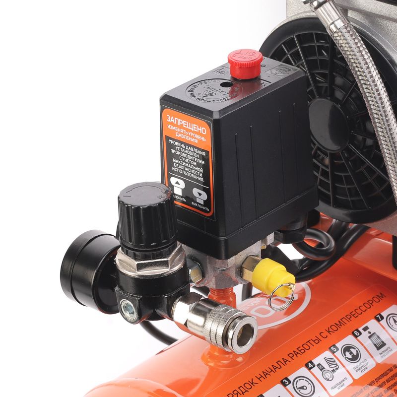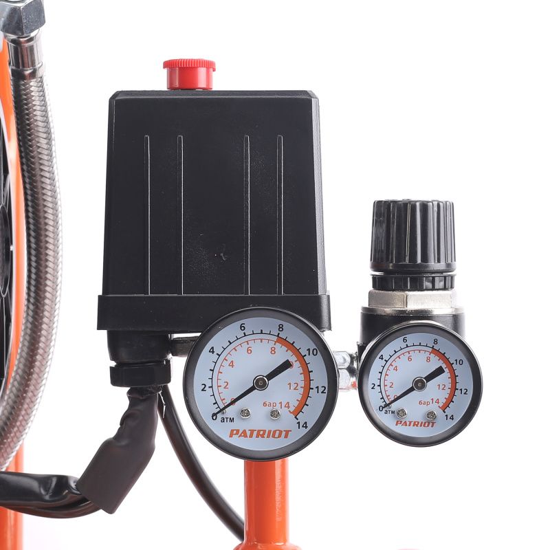 Агрегат оснащен удобным регулятором давления, который позволяет легко настроить необходимое давление воздуха в соответствии с требованиями вашей работы. Компрессор также оснащен манометром, который позволяет контролировать давление воздуха в реальном времени.