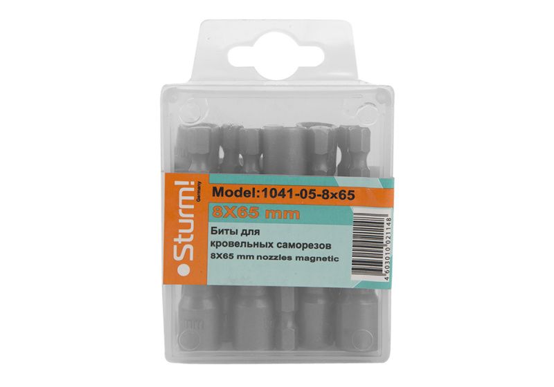 Биты для кровельных саморезов, 8х65мм, 10 шт, магнитные, CrV, Sturm, 1041-05-8x65