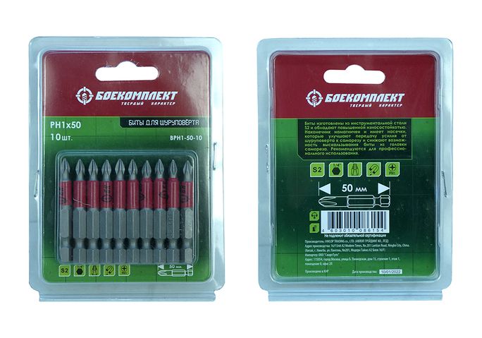 Биты PH1x50мм, сталь S2, 10шт, БОЕКОМПЛЕКТ, BPH1-50-10