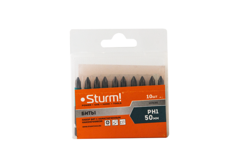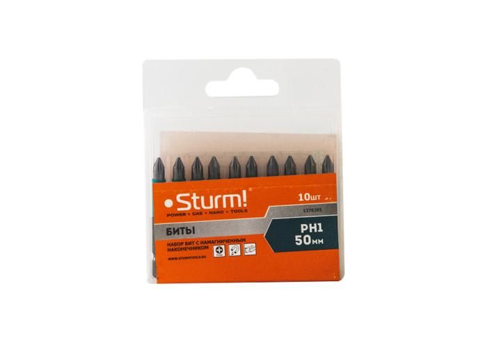 Биты PH1x50мм, сталь S2, С МАГНИТН. НАКОНЕЧНИКОМ,10 шт. В пластик.кейсе Sturm, 1270201