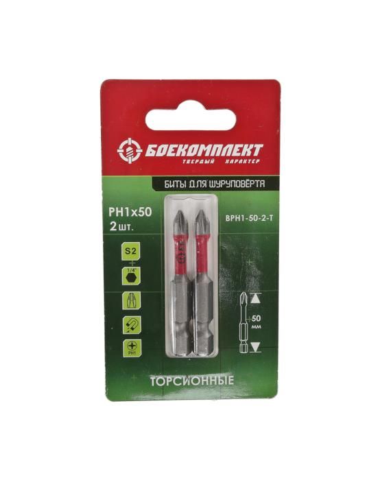 Биты PH1x50мм, торсионн., сталь S2, 2шт, БОЕКОМПЛЕКТ, BPH1-50-2-T