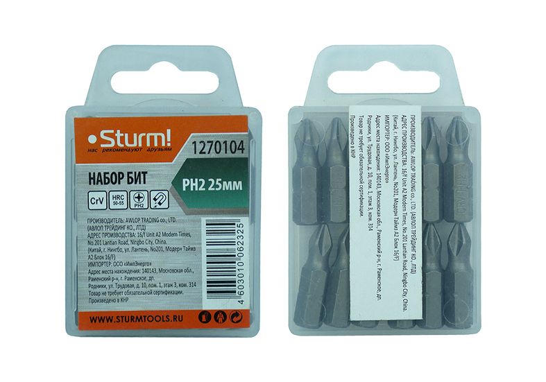 Биты PH2x25мм, сталь crv, с МАГНИТНЫМ НАКОНЕЧНИКОМ,12шт, в пластиковом кейсе, Sturm, 1270104