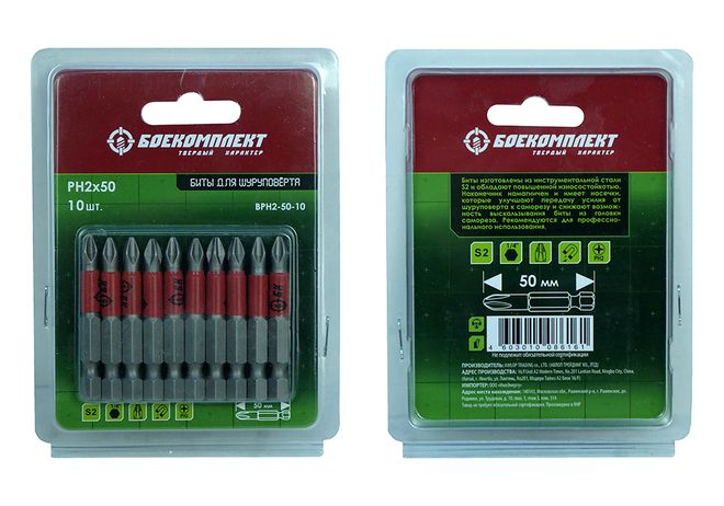 Биты PH2x50мм, сталь S2, 10шт, БОЕКОМПЛЕКТ, BPH2-50-10