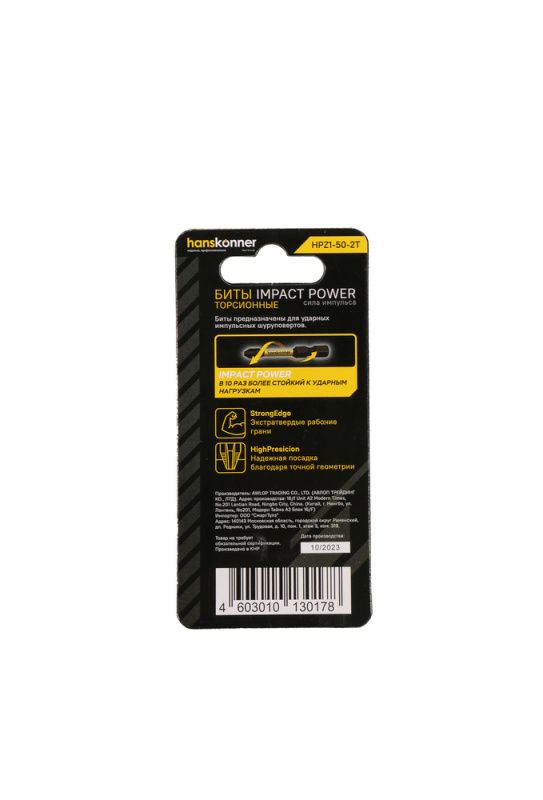 Биты PZ1x50мм, impactpower, торсионные, 2шт, Hanskonner, HPZ1-50-2T