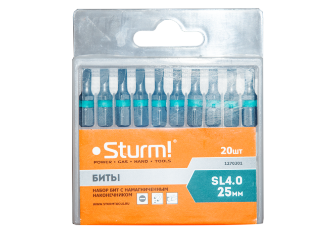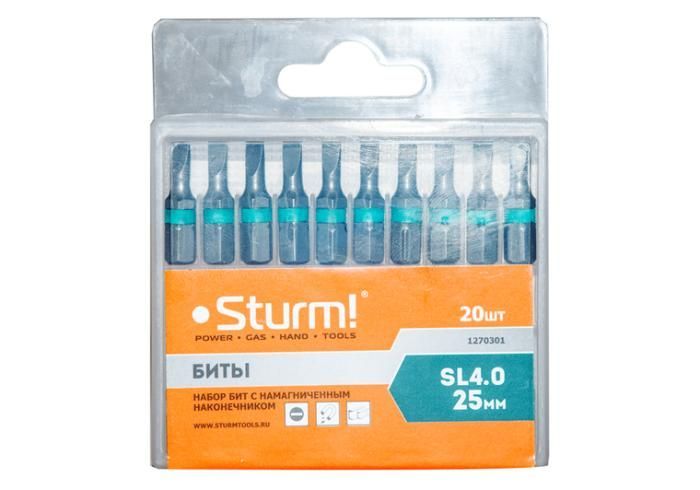 Биты SL4x25мм,сталь S2, С МАГНИТН. НАКОНЕЧНИКОМ,20 шт. В пластик.кейсе Sturm, 1270301