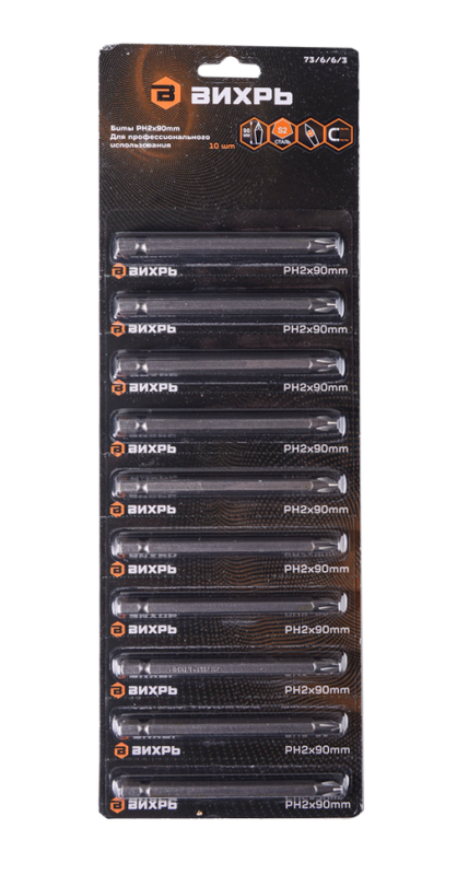 Набор бит PH2 90 мм (10шт), Вихрь, 73/6/6/3