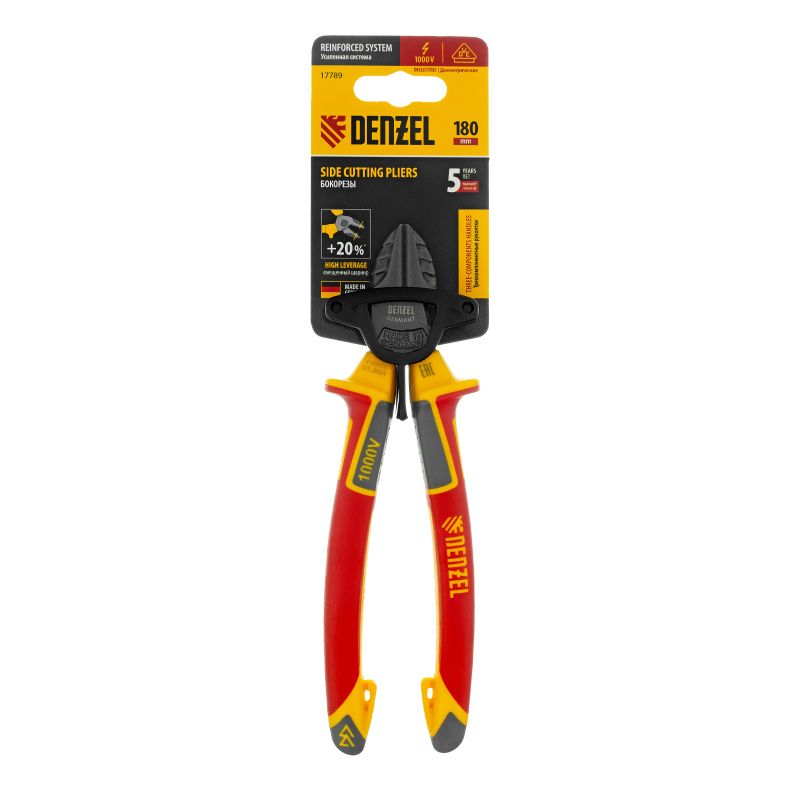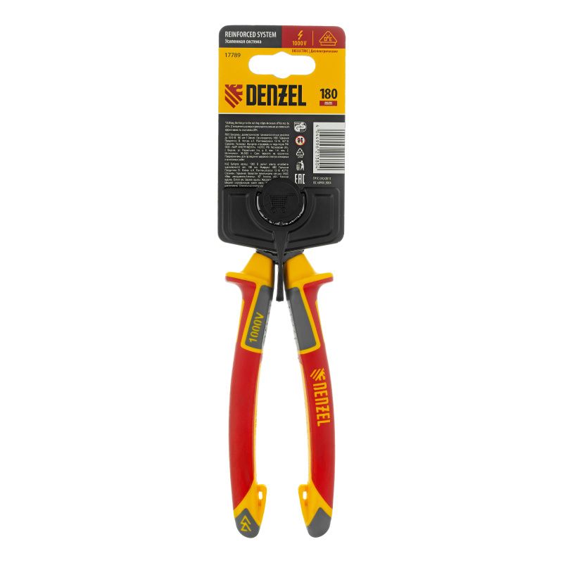 Бокорезы, диэлектрические рукоятки, до 1000 В, трехкомпонентные рукоятки, 180 мм Denzel, 17789