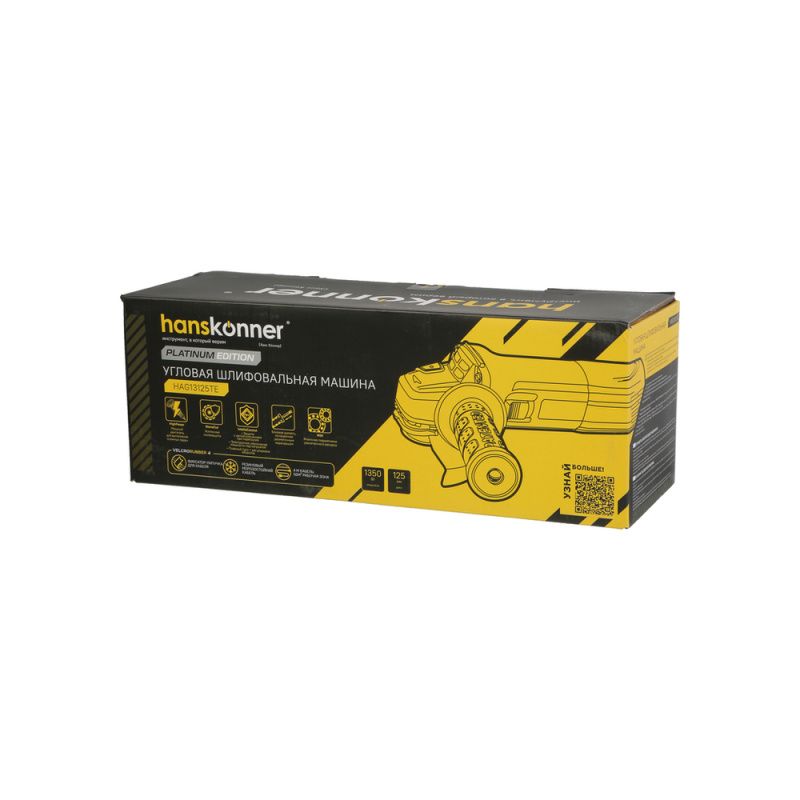 Качество и надёжность. Hanskonner — бренд, который зарекомендовал себя на рынке инструментов. Углошлифовальная машина PLATINUM HAG13125TE оснащена качественными компонентами и имеет долгий срок службы.