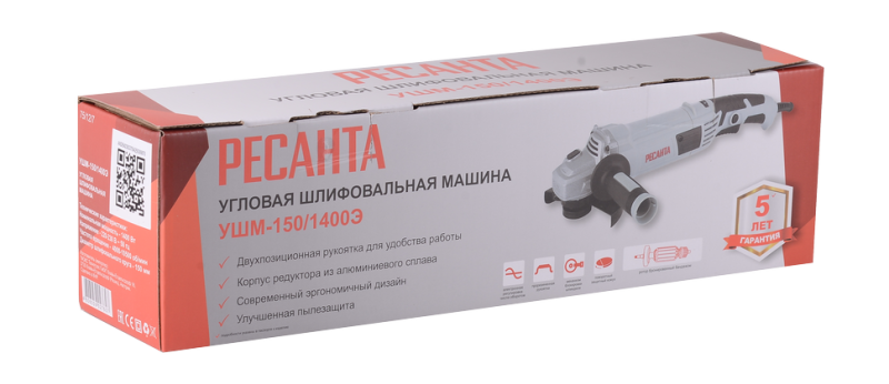 Углошлифовальная машина (болгарка) Ресанта УШМ-150/1400Э, 75/12/7