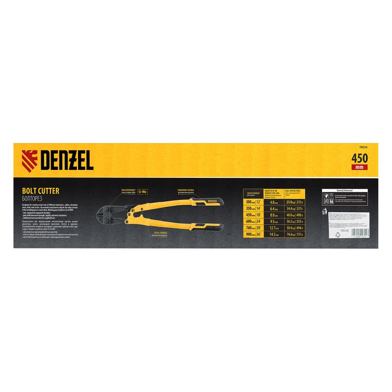 Болторез 450 мм 18", Cr-Mo Denzel, 78534