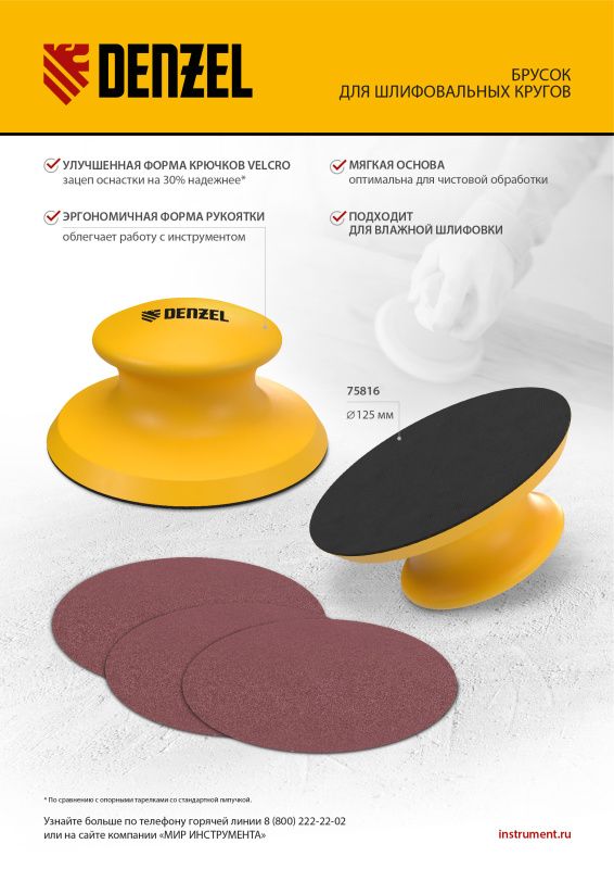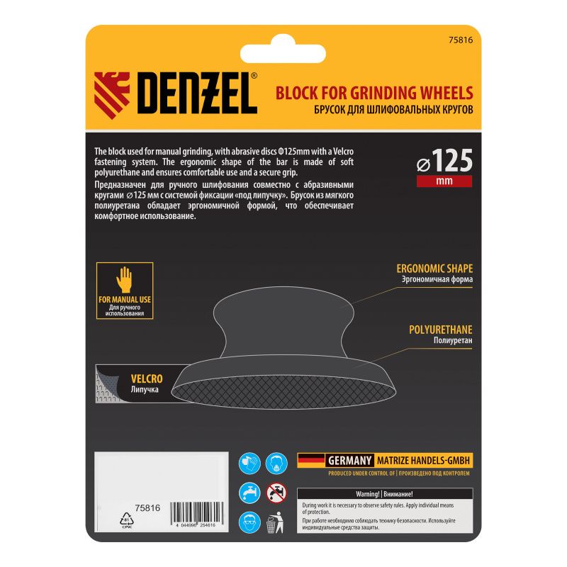Брусок для шлифования, круглый, 125 мм, с "липучкой"// Denzel, 75816