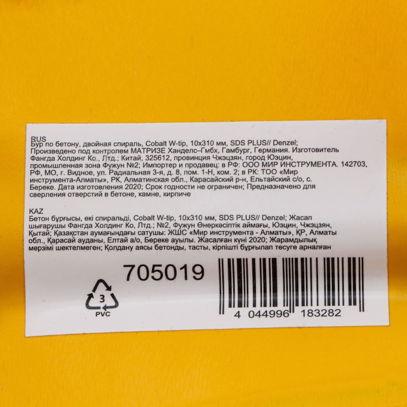 Бур по бетону DENZEL 10 x 310 мм, 705019