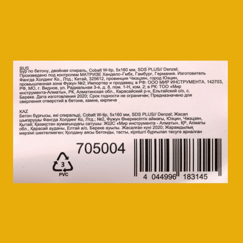Бур по бетону DENZEL5 x 160 мм, 705004